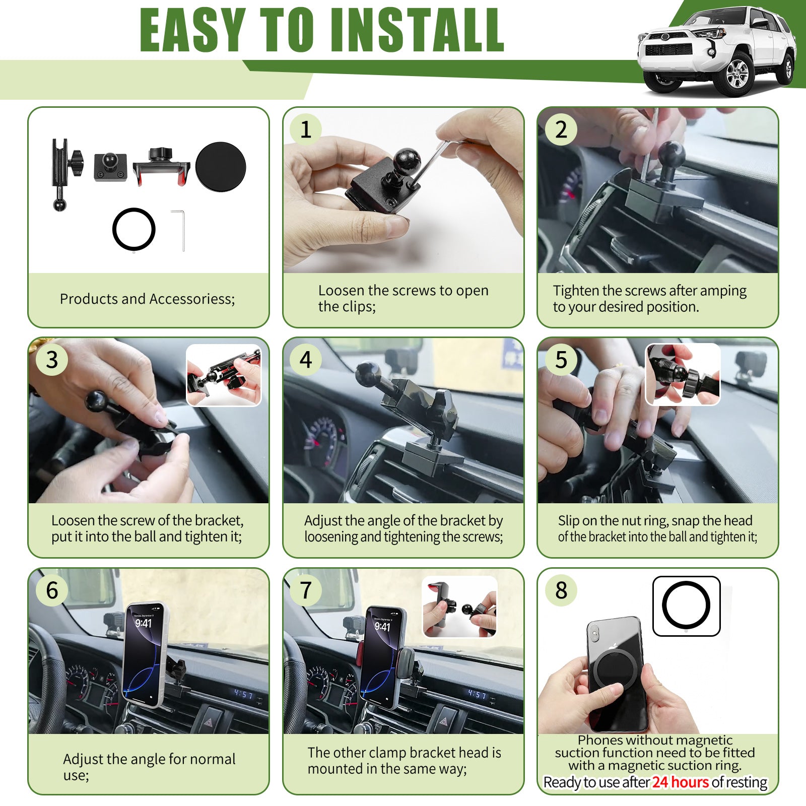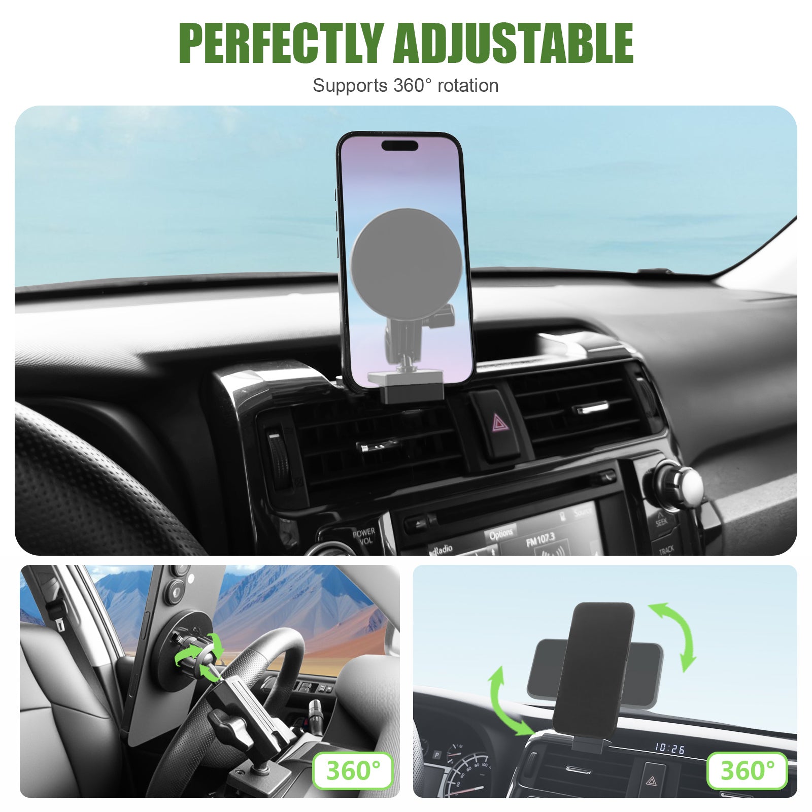 Metal Magnetic Phone Mount Holder for 2010-2024 Toyota 4Runner Strong Magnet Dash Cell Phone Cradles Adjustable Phone Stand Accessories for MagSafe All Smartphone