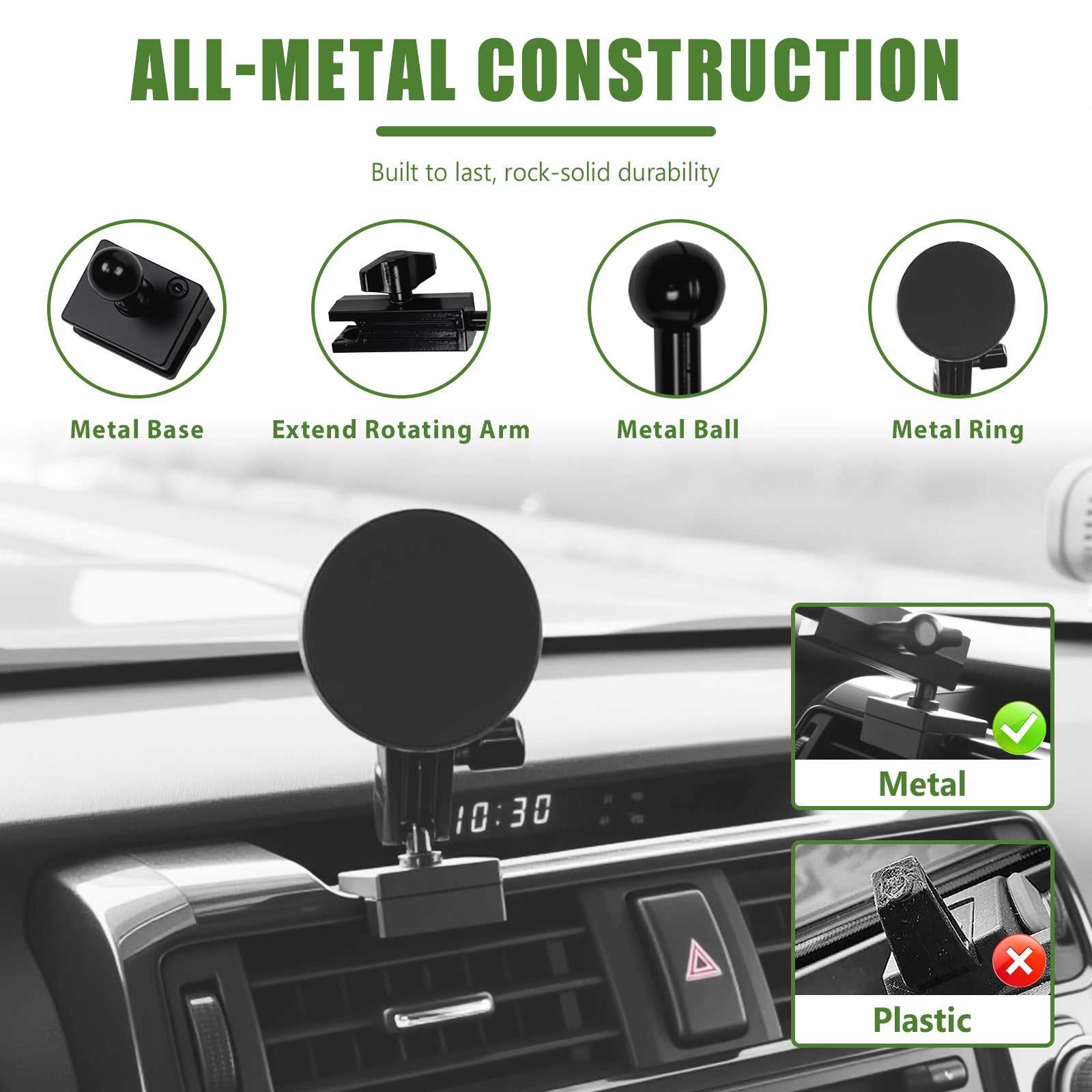 • ALL-METAL MATERIAL: Crafted with a full-metal base and a reinforced bracket, the mount stays securely in place without shifting, and is far more sturdy and durable than plastic alternatives.