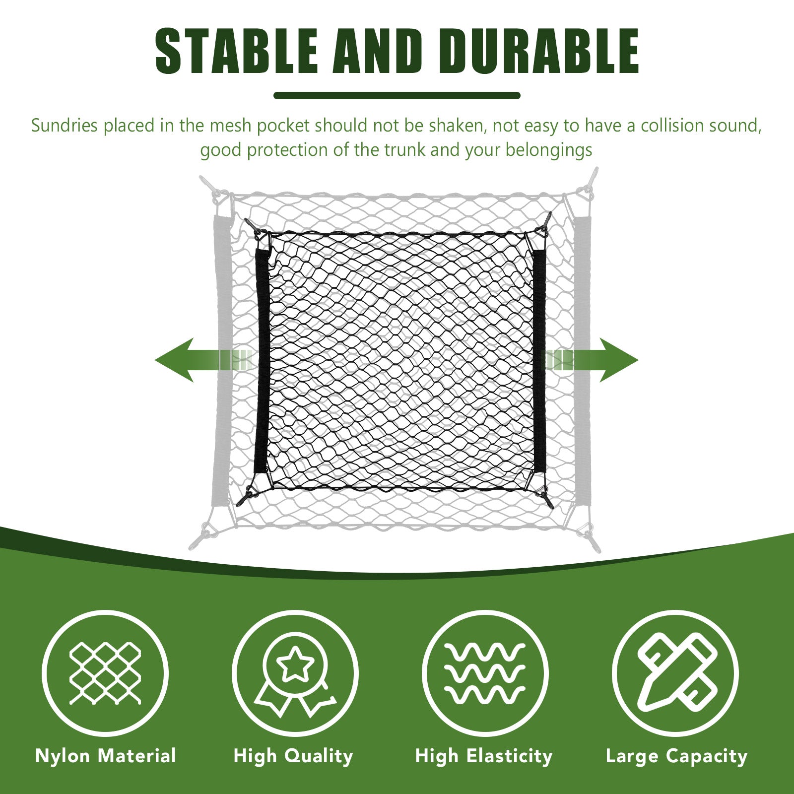 • DURABLE MATERIAL: This trunk organizer net is made of durable fabric that can withstand heavy loads, and is a great addition to your trunk storage